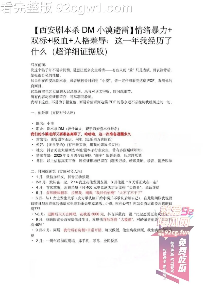 西安剧本杀DM小漠黑料流出,软饭硬吃花女友钱出轨,中国第一软饭男形象彻底崩塌。